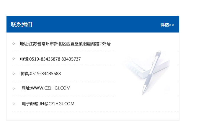 地址:常州市新北區友邦商務大廈1幢16、17層  電話:0519-85101652  傳真:0519-85112595  郵編:213022  網址:www.cz-jiayue_cn.cinforesearch.com  郵箱:xiajifengaa@163.com